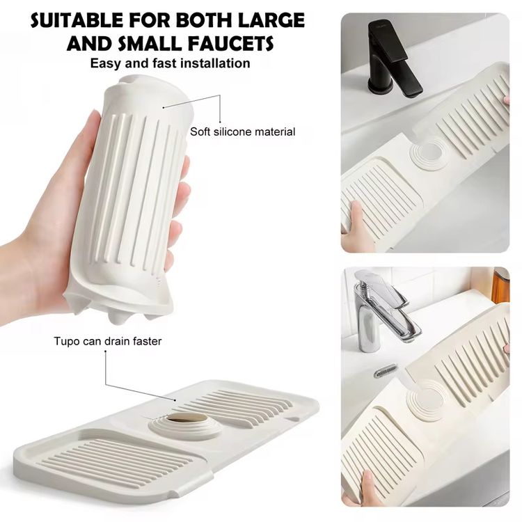 📦 Package Includes: 1 * Faucet Splash Guard Draining Tray Mat