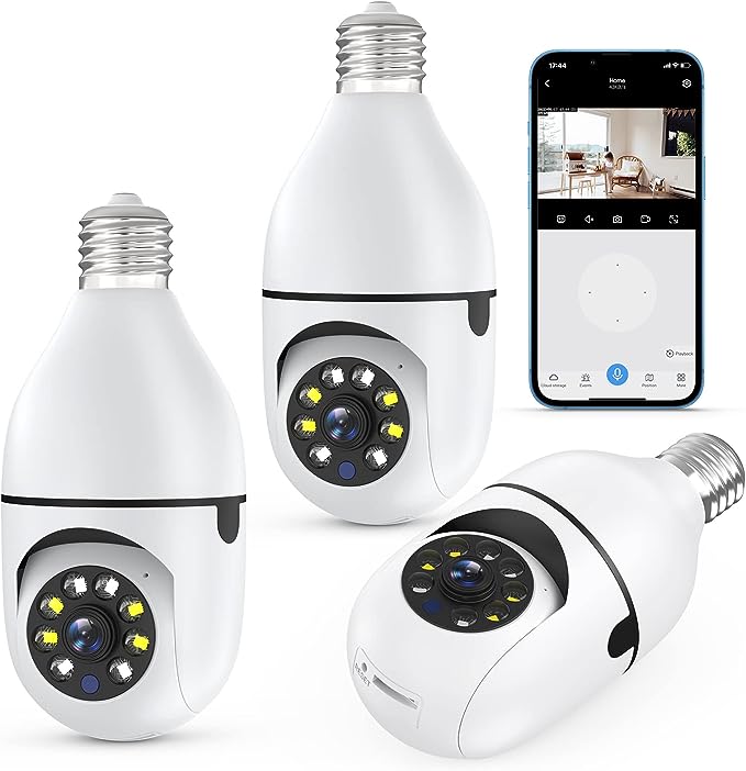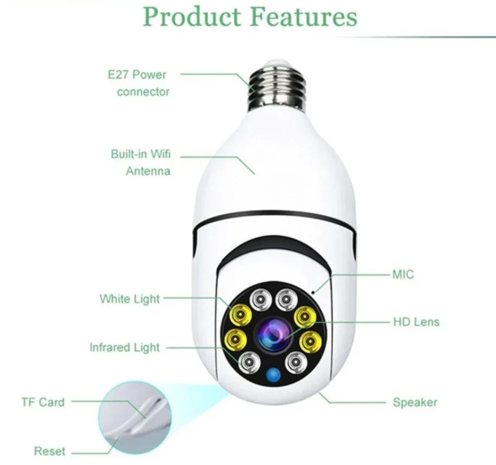 This camera can be installed using a normal E27 bulb base (110V~240V), NO MORE ADDITIONAL INSTALLATION STEPS. Then you just need to connect the camera system to the router and open the app to control the camera to achieve 360-degree viewing without blind spots.